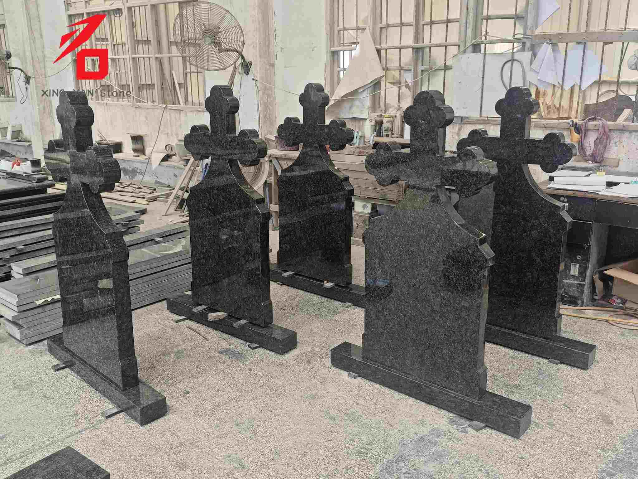 Materiaal: Er is gekozen voor zwart graniet met hoge dichtheid, met dichte en harde steeneigenschappen, weerbestendig en erosiebestendig. Het oppervlak ondergaat een fijne polijstbehandeling, waardoor een hoge glans en een uniforme textuur ontstaat. Het is ontworpen voor langdurige plaatsing buiten en is bestand tegen vervaging en vervorming, waardoor de duurzaamheid en visuele integriteit van de grafsteen wordt gegarandeerd.