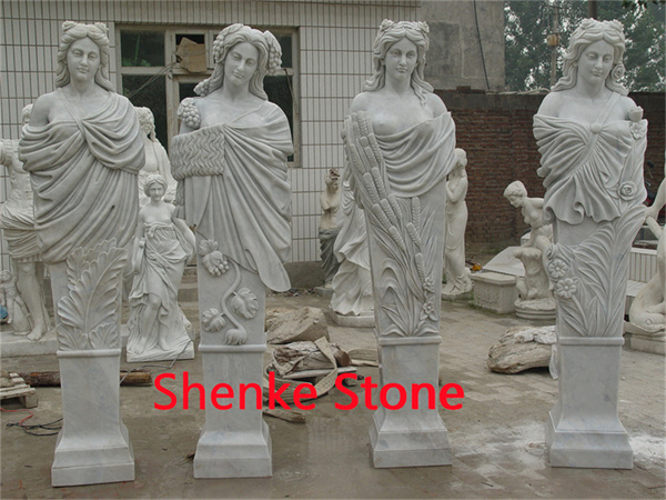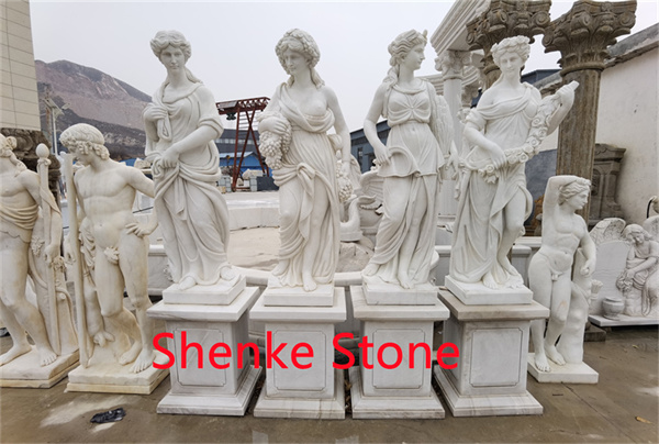 Deze beschrijvingen zijn bedoeld om de schoonheid, elegantie en thematische rijkdom vast te leggen van een collectie met meisjes die de vier seizoenen vertegenwoordigen, allemaal gemaakt van marmersteen.